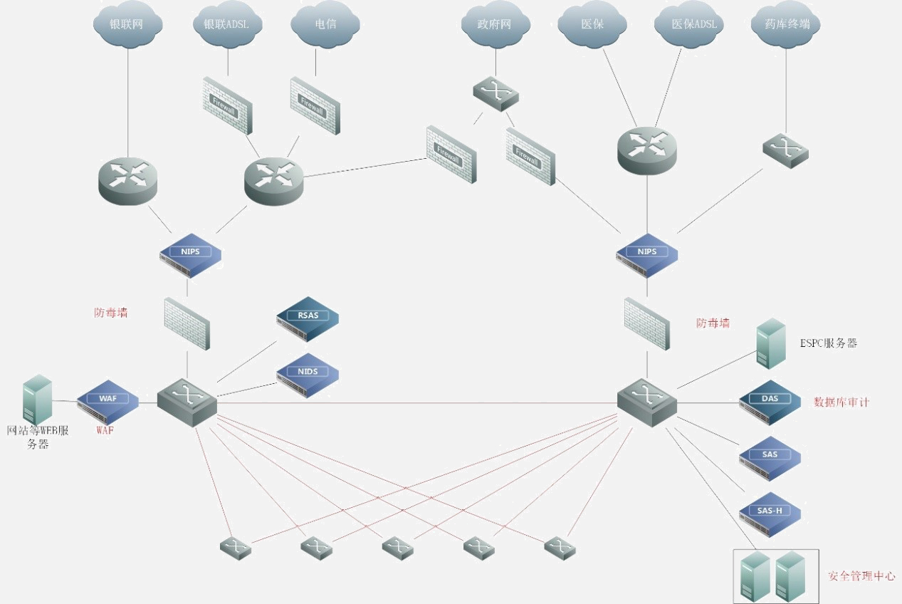 1)2017年一期建設重點在各醫院部署外網防火墻、入侵防御系統、入侵檢測系統、安全審計系統、堡壘機、遠程安全評估系統等產品,通過以上安全產品的上架運行,提升了四家醫院基本的安全防范水平。